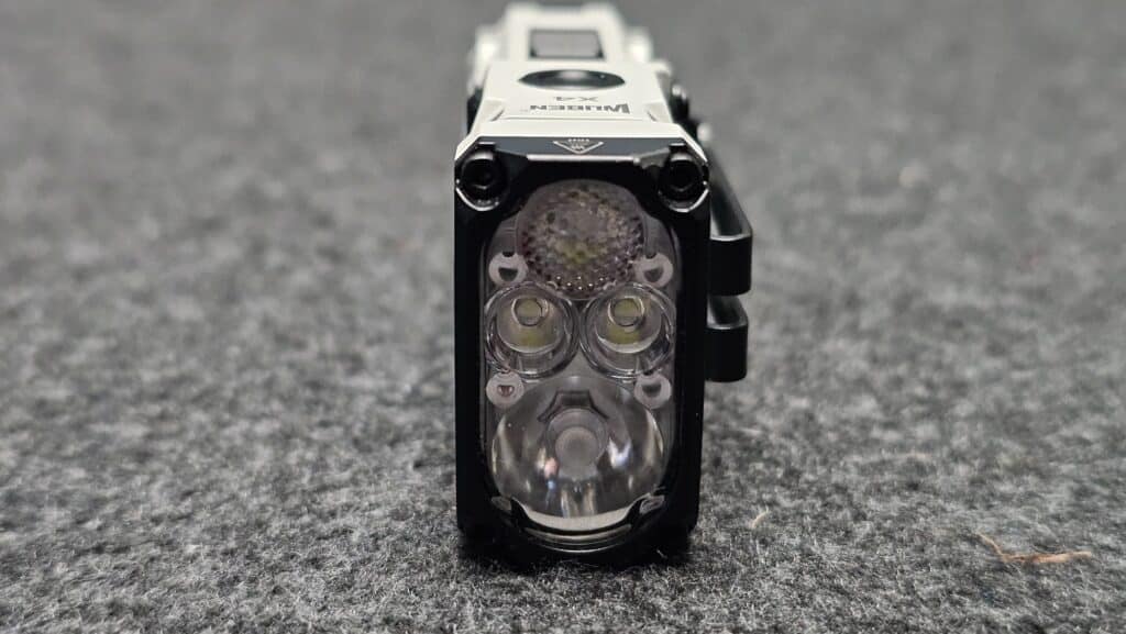 The side light provides a unique built-in flashlight on the side that is warm and adjustable on its brightness. It also offers a RGB signal in seven colors that can be rotated through using the main button.