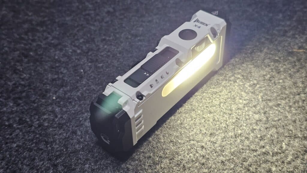 This is an incredibly small compact highly versatile EDC flashlight from Wuben. It offers 1,500 lumens max output, 3400 milliamp hour battery for long-lasting shine, multiple switches for turning off and on with the magnet on the back to hold it in place. It has a three-mode hard switch system that makes it easy to switch between bright modes dimmer modes and side lights. The flashlight is IP68 rated to keep dust and rain out. The side light offers a warm RGB light for multiple uses and scenarios.